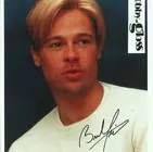 His autograph: Shown here, you'll see a nice portrait with an authentic early-career signature. Brad has a distinctive and concise nice autograph, but it's gotten quicker and briefer over time. I'm happy to have this nice full signature of his. And you'll also see I have a forgery signed card pawned off as "authentic in-person".