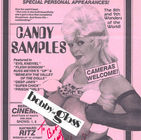 CANDY SAMPLES had (supposedly) the same 44DD breast size as Carol Doda and was appearing at a "strip show" on Market Street in San Francisco when I wrote to her. I was a bit precocious, always looking at strip club "live nude appearance" ads in the newspaper for a name that I recognized, knowing that (a) I was too young to get in these clubs and (b) it was a great opportunity for through the mail autograph collecting these nomadic, often elusive, erotic entertainers.